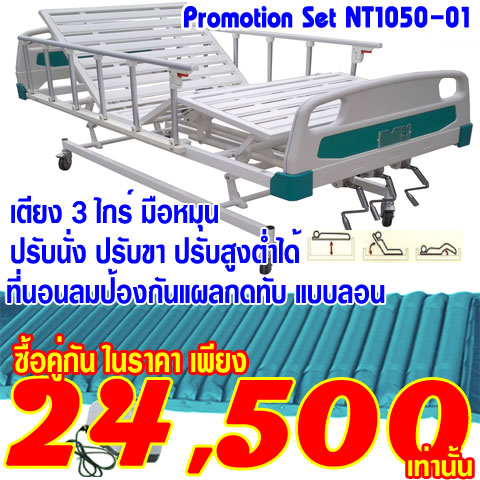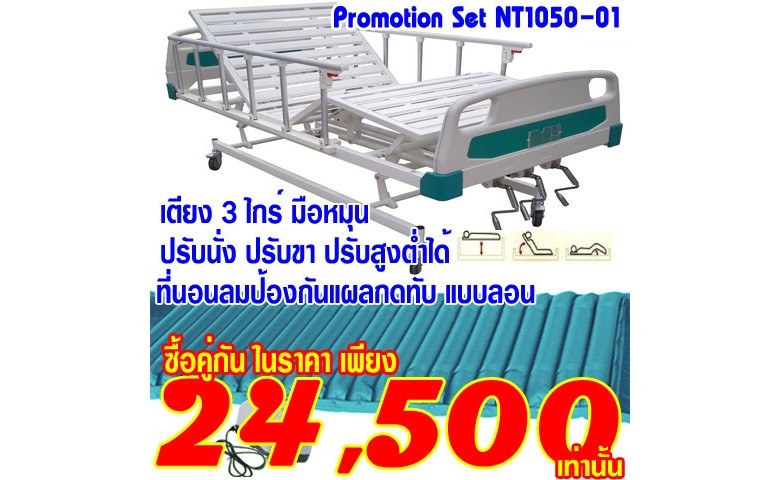 Be the first to review “NT1050-01 โปรโมชั่นเตียงผู้ป่วย 3 ไกร์ ปรับระดับสูงต่ำได้ +ที่นอนลมผู้ป่วยแบบลอน”