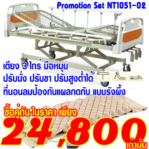 Be the first to review “NT1051-02โปรโมชั่นขายเตียงผู้ป่วย 3 ไกร์ มือหมุน คู่กับที่นอนลมแบบรังผึ้ง”