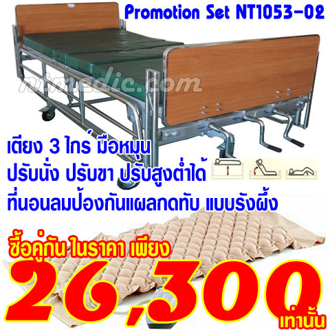 NT1053-02 โปรโมชั่นเตียงผู้ป่วย 3 ไกร์มือหมุน