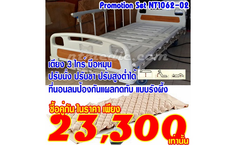 Be the first to review “NT1062-02 เตียงผู้ป่วย 3 ไกร์ มือหมุน คู่ ที่นอนลมผู้ป่วยแบบลอน”
